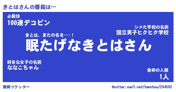| ヒーロー風カッコイイあだ名 | 『スーパーキトハ』『ウルトラきとはマン』 |