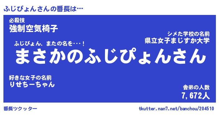 | ピコ太郎風あだ名 | 『フコ次郎』『ピフ三郎』『フジ一郎』 |