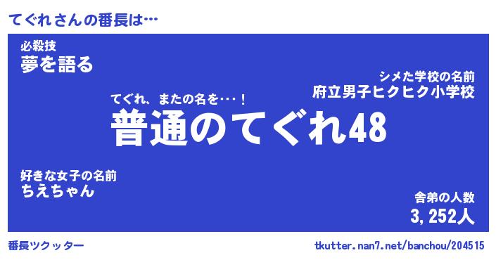 | ヒーロー風カッコイイあだ名 | 『スーパーテグレ』『ウルトラてぐれマン』 |