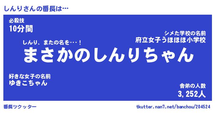 | ヒーロー風カッコイイあだ名 | 『スーパーシンリ』『ウルトラしんりマン』 |