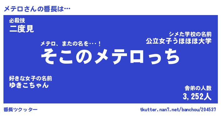 | ヘコむあだ名 | 『メテふぇ~』『酢こんぶ』『メテお』 |