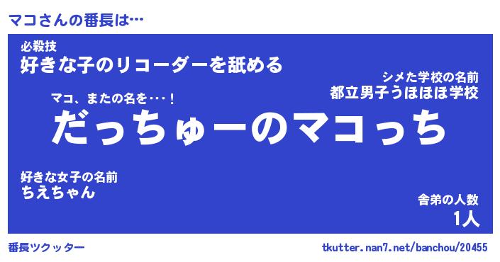 | ヘコむあだ名 | 『マコにゅー』『酢こんぶ』 |