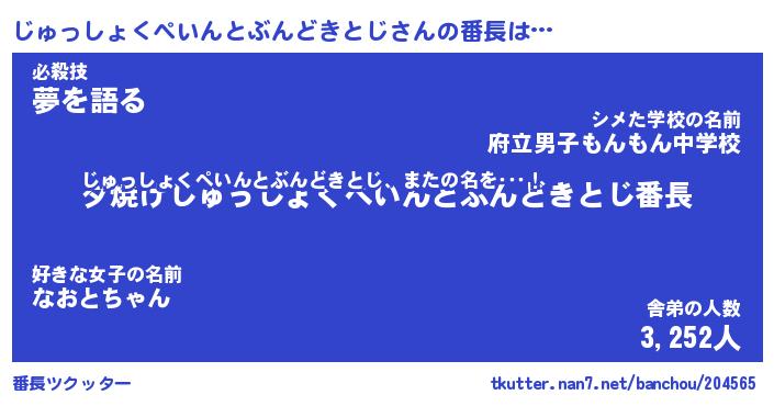 | 意味不明あだ名 | 『ペロリンじゅっしょくぺいんとぶんどきとじ』 |