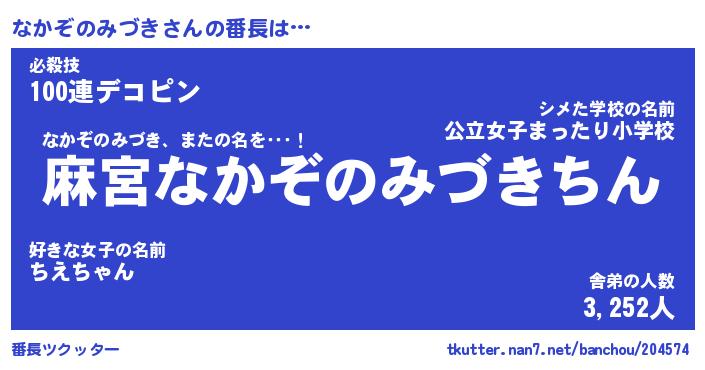 | 恥ずかしいあだ名 | 『プリティーなかぞのみづき』『なかちん』 |