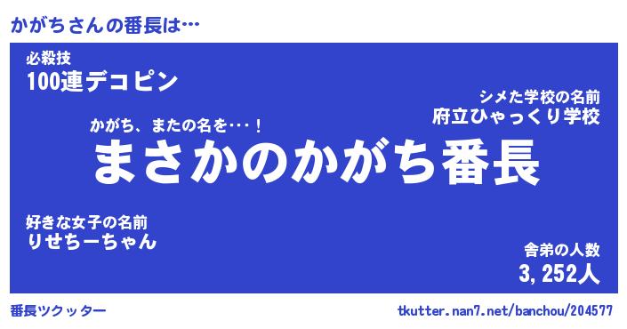 | ヒーロー風カッコイイあだ名 | 『スーパーカガチ』『ウルトラかがちマン』 |