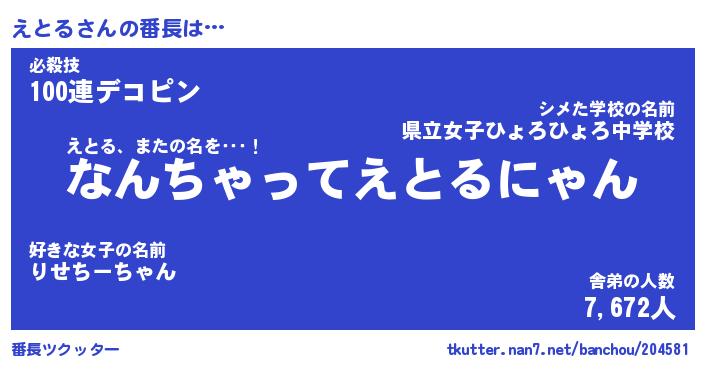 | 意味不明あだ名 | 『ペロリンえとる』『えとるフォーエバー』 |