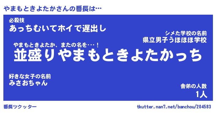| 男性向けラノベタイトル風あだ名 | 『やまもときよたかの憂鬱』 |