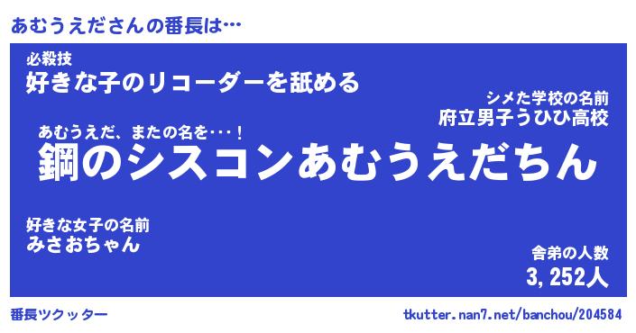 | ヒーロー風カッコイイあだ名 | 『スーパーアムウエダ』『幻影騎士アム』 |