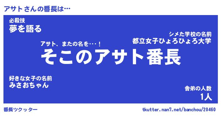 | ポケモン風あだ名 | 『アサチュウ』『アサトダネ』 |