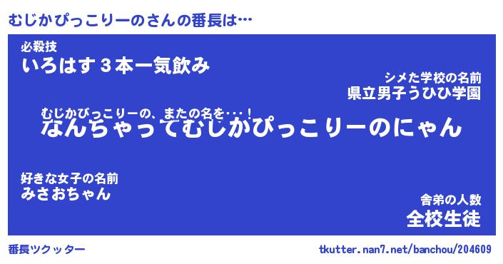 | 伝説のあだ名 | 『伝説のスナイパーむじかぴっこりーの』 |