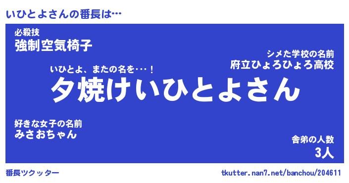 | ピコ太郎風あだ名 | 『イコ六郎』『ピイ一郎』『イヒ史郎』 |