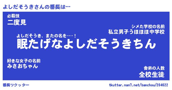 | 肩書あだ名 | 『よしだそうき御曹司』 |