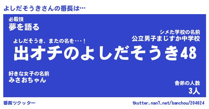 | 伝説のあだ名 | 『伝説のスナイパーよしだそうき』 |
