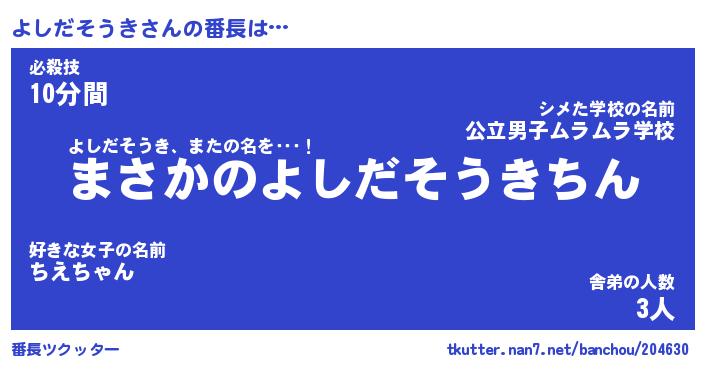| 肩書あだ名 | 『よしだそうき社長』『よしだそうき班長』 |