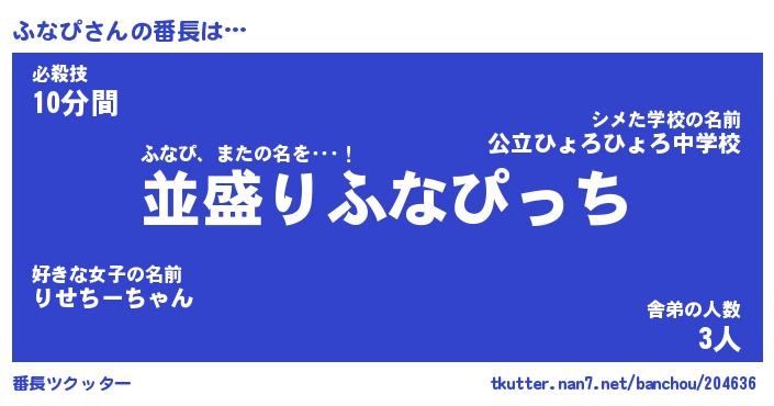 | 男性向けラノベタイトル風あだ名 | 『ふなぴの憂鬱』 |