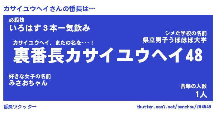 | 意味不明あだ名 | 『ペロリンカサイユウヘイ』 |