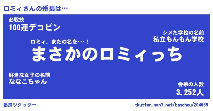 | ポケモン風あだ名 | 『ロミチュウ』『ロミィダネ』 |