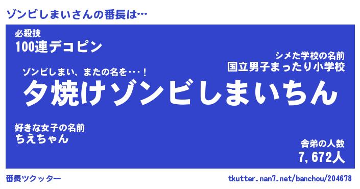 | ヒーロー風カッコイイあだ名 | 『スーパーゾンビシマイ』『炎刃騎士ゾン』 |