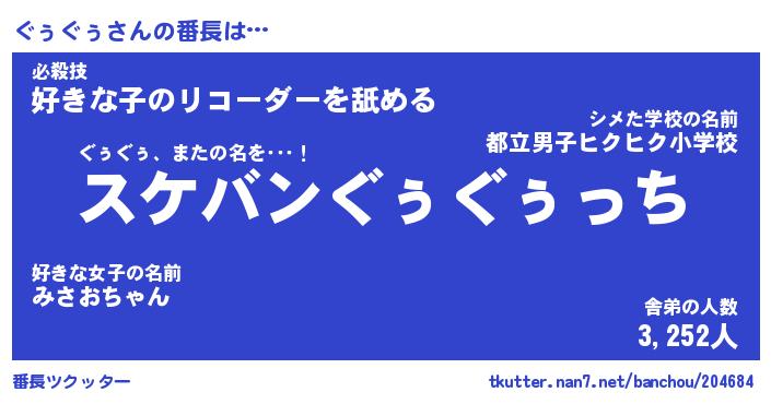 | ポケモン風あだ名 | 『グゥチュウ』『グゥグダネ』 |