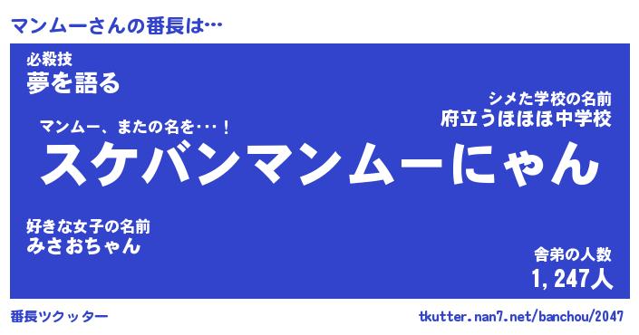 | 意味不明あだ名 | 『ペロリンマンムー』『永久保存マンムー』 |