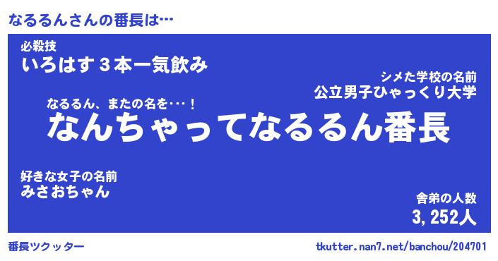 | 意味不明あだ名 | 『ペロリンなるるん』『永久保存なるるん』 |