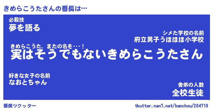 | 伝説のあだ名 | 『封印されし竜騎士きめらこうた』 |