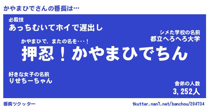 | ファンタジー風あだ名 | 『カヤフェル』『エターナルカヤマヒデー』 |