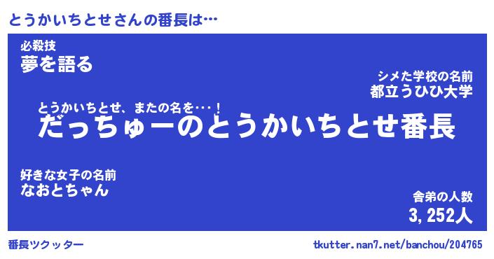 | 肩書あだ名 | 『とうかいちとせ御曹司』 |