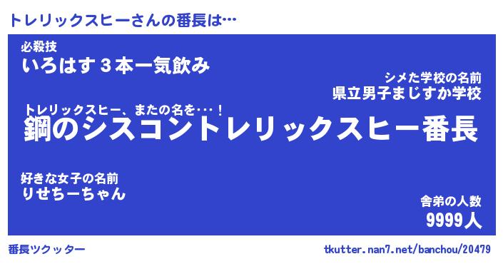 | 伝説のあだ名 | 『封印されしスナイパートレリックスヒー』 |