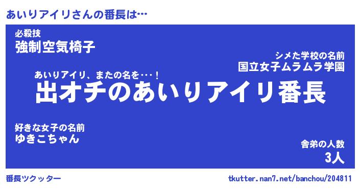 | 欧米人風あだ名 | 『マイケルあいりアイリ』 |
