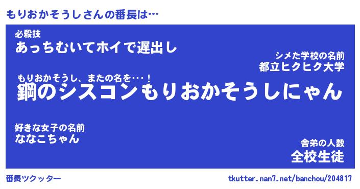 | 伝説のあだ名 | 『封印されしスナイパーもりおかそうし』 |