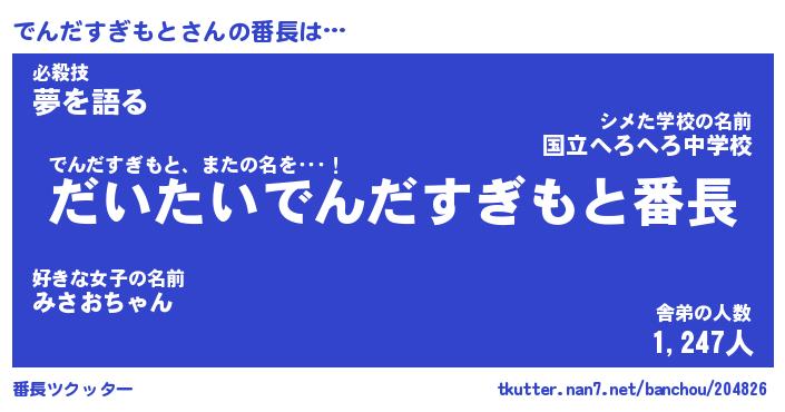 | 男性向けラノベタイトル風あだ名 | 『でんだすぎもとの憂鬱』 |