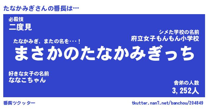 | 2回繰り返すあだ名 | 『たなたな』『たたなな』『ぬれぬれ』 |