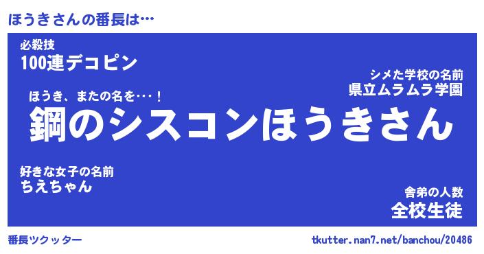 | ヘコむあだ名 | 『ほうもー』『つくし』『ほうっ子』 |