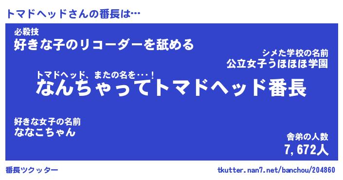 | 肩書あだ名 | 『トマドヘッド社長』『トマドヘッド校長』 |