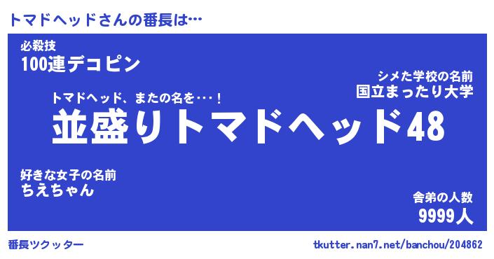 | ヘコむあだ名 | 『トマにゅー』『豆乳』『トマぷりん』 |