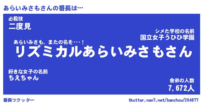 | ヒーロー風カッコイイあだ名 | 『スーパーアライミサモ』『炎刃騎士アラ』 |
