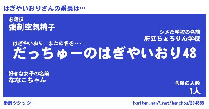 | ヒーロー風カッコイイあだ名 | 『スーパーハギヤイオリ』『暗黒騎士ハギ』 |