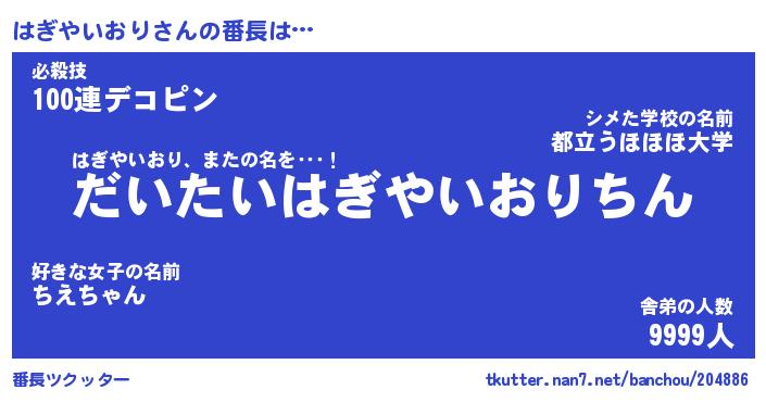 | ヒーロー風カッコイイあだ名 | 『スーパーハギヤイオリ』『暗黒騎士ハギ』 |