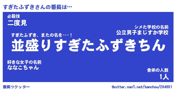 | 男性向けラノベタイトル風あだ名 | 『すぎたふずきの憂鬱』 |
