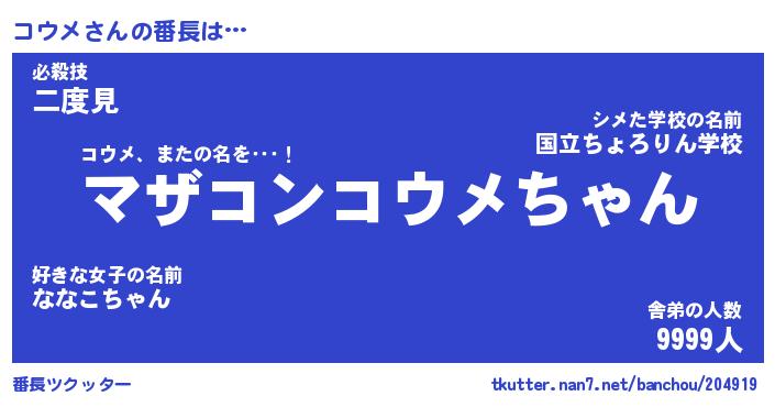 | 意味不明あだ名 | 『ペロリンコウメ』『コウメフォーエバー』 |