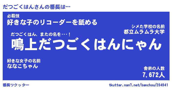 | ポケモン風あだ名 | 『ダツチュウ』『ダツゴダネ』 |