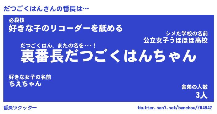 | ヒーロー風カッコイイあだ名 | 『スーパーダツゴクハン』『幻影騎士ダツ』 |