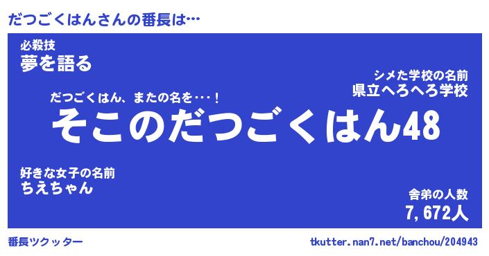 | ヘコむあだ名 | 『だつにゅー』『豆乳』『だつ太郎』 |