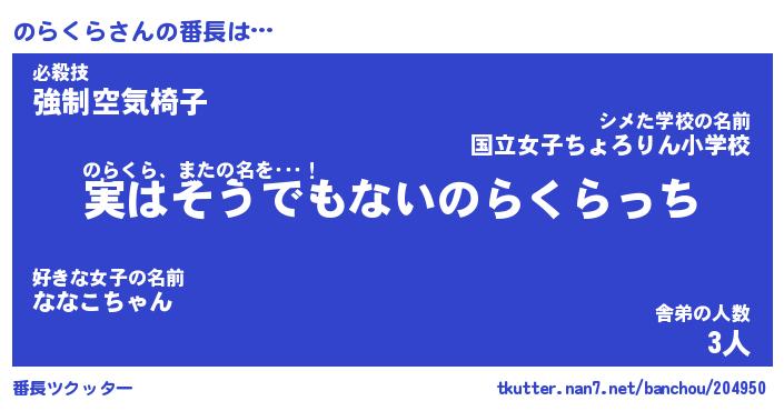 | 意味不明あだ名 | 『ペロリンのらくら』『永久保存のらくら』 |