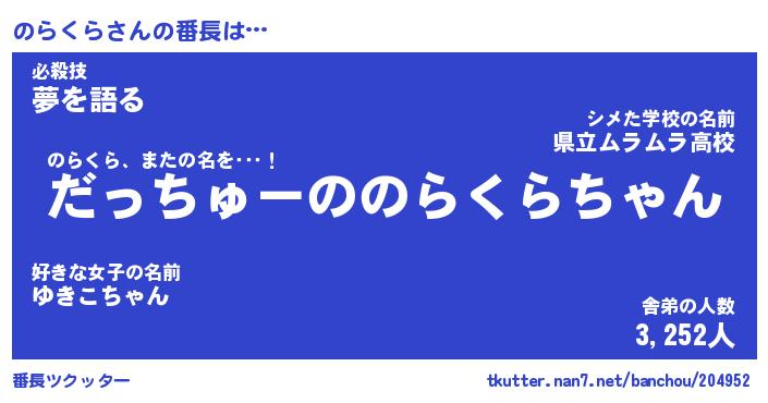 | 2回繰り返すあだ名 | 『のらのら』『ののらら』『かんかん』 |