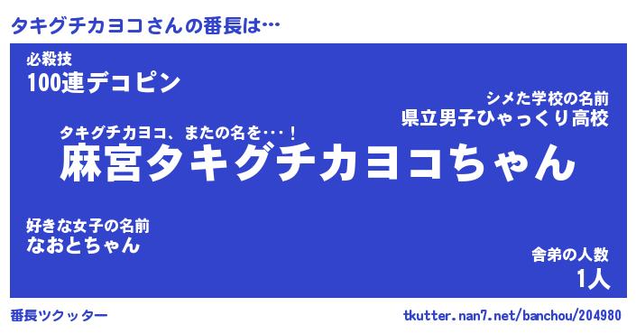 | ピコ太郎風あだ名 | 『タコ六郎』『ピタ四郎』『タキ史郎』 |