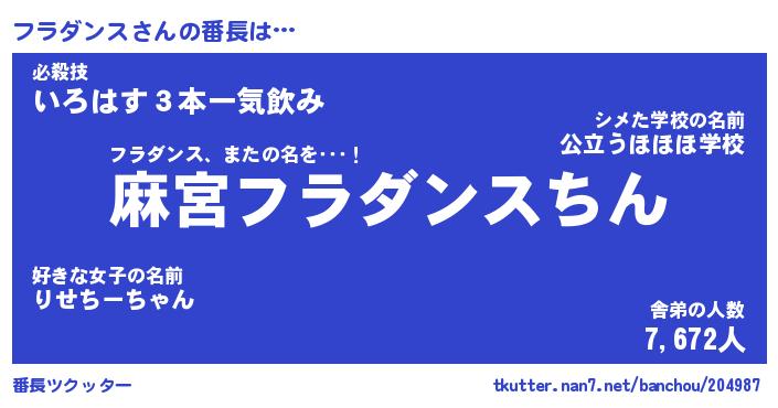 | ヘコむあだ名 | 『フラにー』『なまこ酢』『フラお』 |