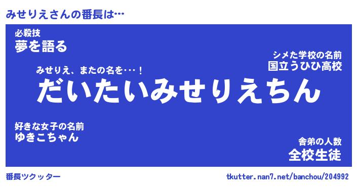 | ヘコむあだ名 | 『みせもー』『豆乳』『みせお』 |