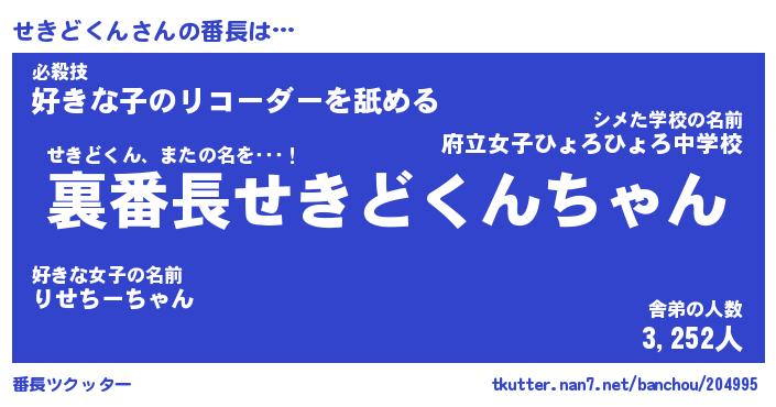 | 伝説のあだ名 | 『不死鳥のスナイパーせきどくん』 |